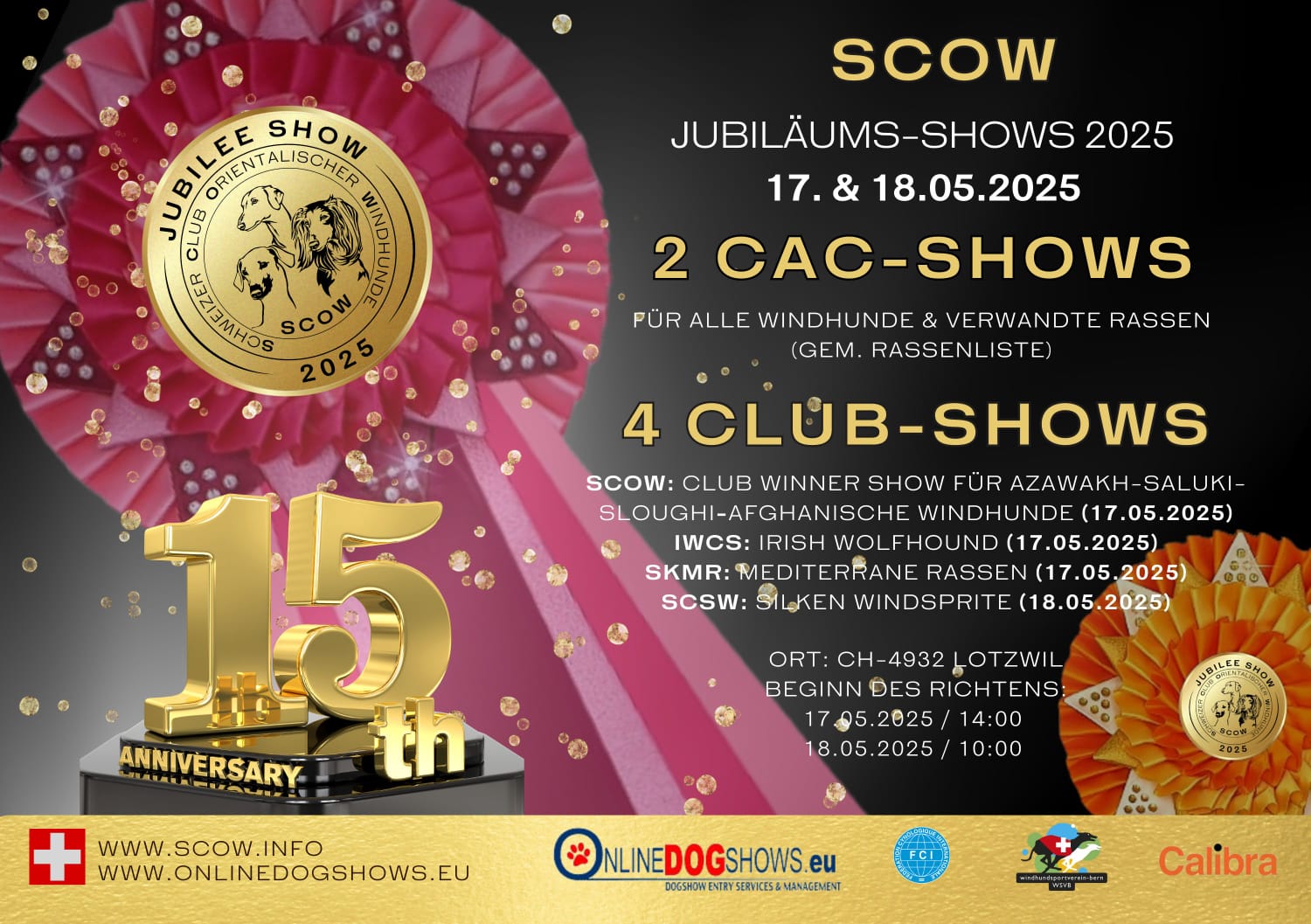 Le Club-Winner-Show aura lieu le 17.05.2025 pour les races du SCOW et les Lévriers Afghans.