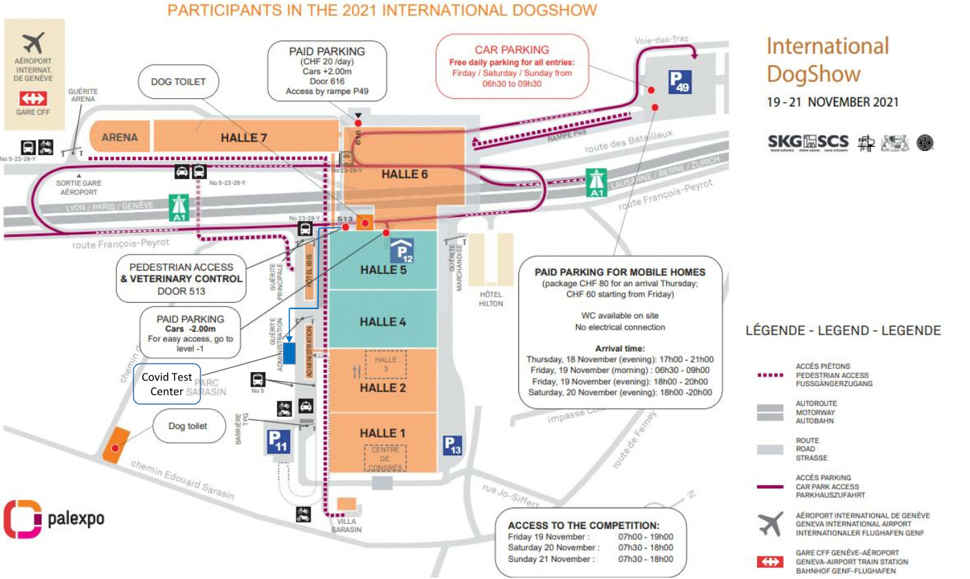 C. PalExpo Test Center: Competitors in dog shows can also be tested on presentation of the REGISTRATION SHEET for the dog show. For competitors, the price of the test is 50CHF per test and will be payable directly on site at the time of the test. Payment only by card. No cash