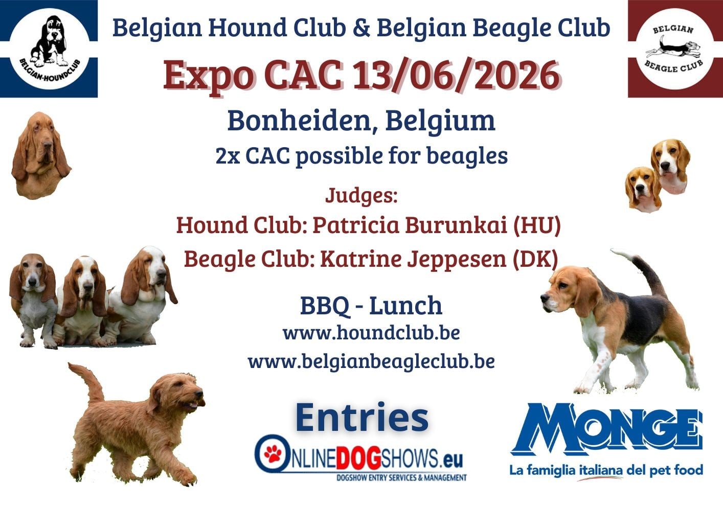 Belgian Beagle Specialty at 11.00Belgian Hound Club Specialty at 8.30(Full Gr6 except Dalmatian & Rhodesian Ridgeback )